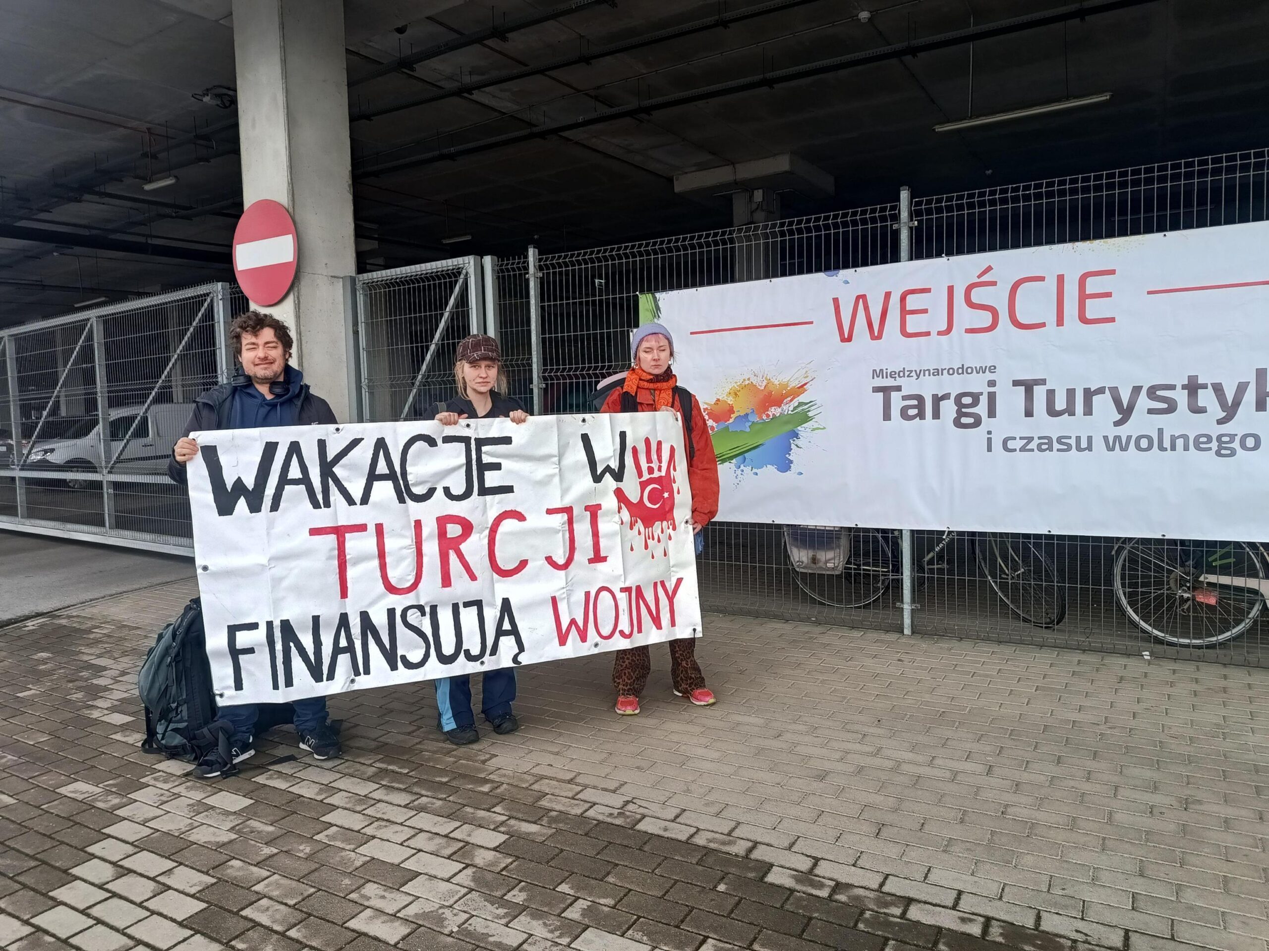 W tym roku w Polsce obchody Newroz odbyły się w co najmniej 5 miejscach – w Łodzi, w Krakowie i 3 (!) w Warszawie. Niestety tylko uczestniczki jednego z nich chciały udostępnić publicznie swoje nagrania. Pozostałe obawiają się represji ze strony Turcji, choć są to obchody związane z kulturą kurdyjską w kraju położonym na innym kontynencie! Dlatego w weekend byłyśmy też na targach turystycznych we Wrocławiu, gdzie zachęcałyśmy potencjalne turystki i turystów, żeby nie planowały wakacji w Turcji. Jak już pisałyśmy, Turcja prześladuje swoje własne obywatelki, a także społeczność kurdyjską wszędzie tam, gdzie żyje, np. w Polsce. Dlatego nie chcemy zasilać budżetu na zbrojenie Turcji naszymi wakacjami i was do tego również zachęcamy!