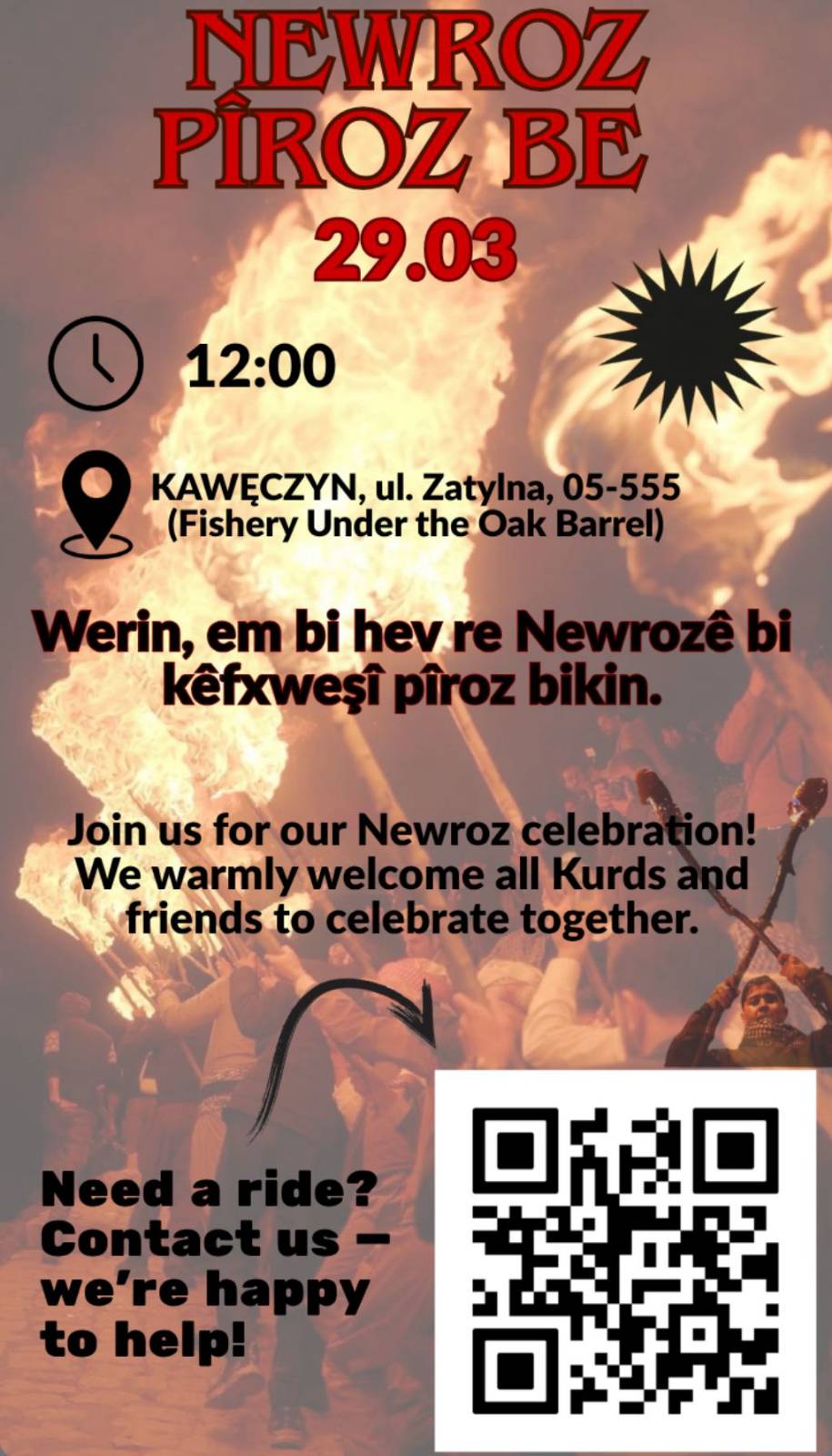 ☀️Społeczność kurdyjska organizuje Newroz na otwartym powietrzu o 12.00 w Kawęczynie, w pięknym miejscu nad jeziorem. Wpadnijcie na tradycyjne tańce i wspólną zabawę!